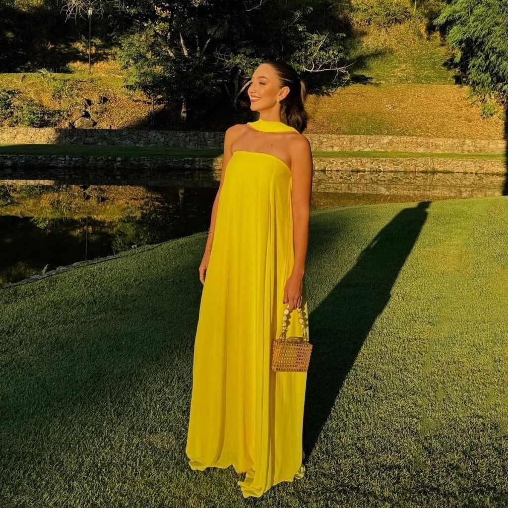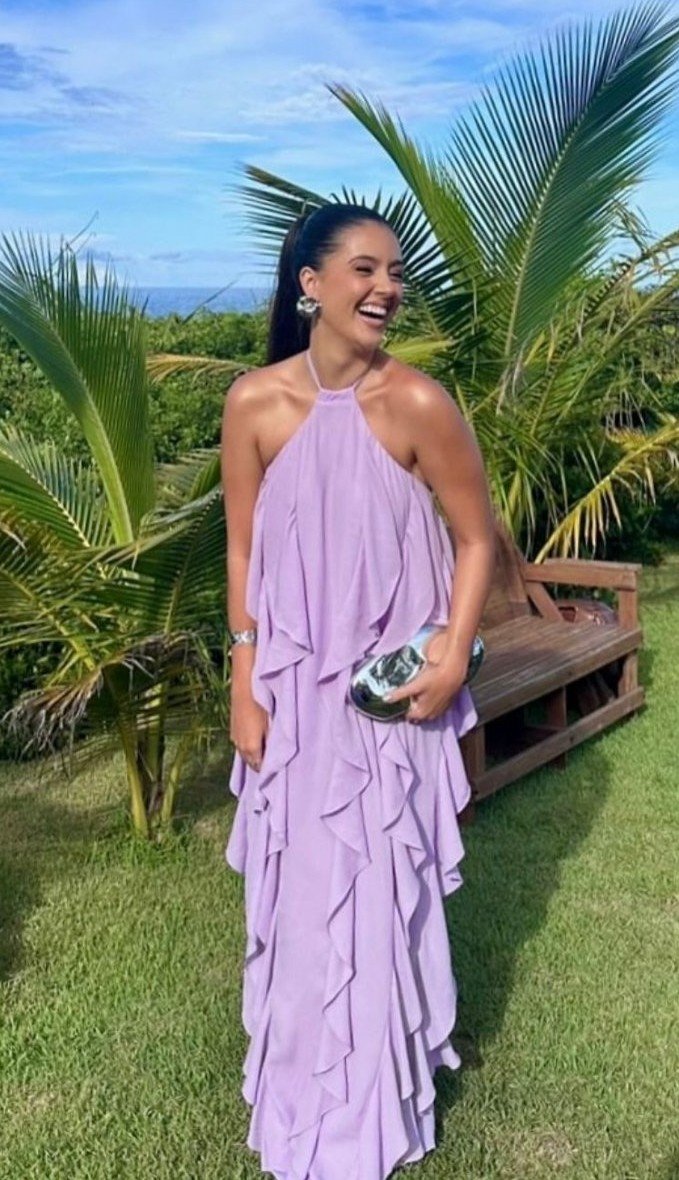 No caso das convidadas, sugerimos vestidos longos ou midi, acompanhados de salto grosso, que proporcionará maior conforto diante das características do piso do local. Pedimos, ainda, que evitem o uso da cor branca, reservada à noiva, e da cor verde, destinada às madrinhas.